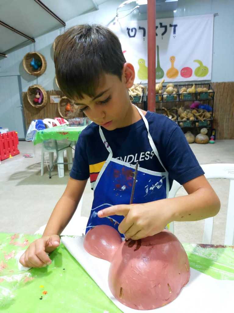 אחרי ההסבר, ניגשנו לסדנאת היצירה, כל ילד בחר דלעת מסוימת וקישט אותה.